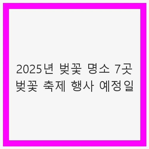 👉2025년 벚꽃 명소 7곳 벚꽃 축제 행사 예정일 바로보기2025년 벚꽃 명소 7곳